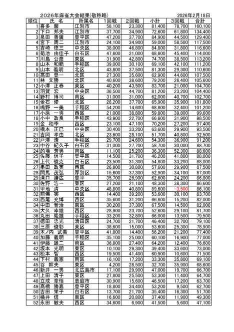 新春麻雀大会が2月18日(水)12時より 麻雀夢道場で開催されました。