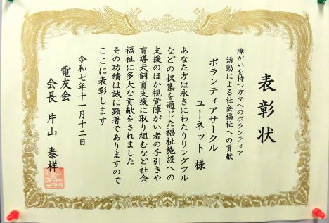 ボランティア・ユーネット表彰受賞 新着情報