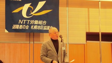 来賓として「NTT労組北海道総支部執行委員長 萩原光典様」「電友会北海道地方本部こぶし会会長 伴秀美様」「札幌地区退職者連合会長 馬淵 秀彰様」から挨拶がありました。